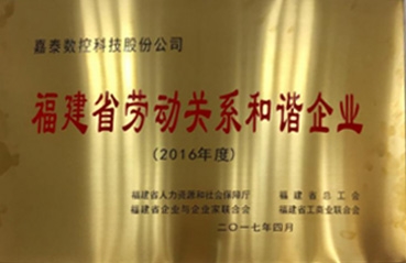 嘉泰數(shù)控:被授予“福建省勞動關(guān)系和諧企業(yè)”榮譽稱號