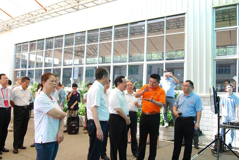 蘇亞帥董事長(zhǎng)信心滿滿的為萬(wàn)鋼部長(zhǎng)、周濟(jì)院長(zhǎng)作“智能工廠示范工程項(xiàng)目”的相關(guān)介紹