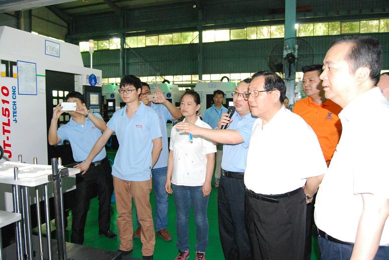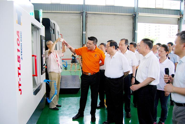 萬(wàn)鋼部長(zhǎng)、周濟(jì)院長(zhǎng)等領(lǐng)導(dǎo)專家聽(tīng)取蘇亞帥董事長(zhǎng)關(guān)于高速鉆攻機(jī)JT-TL510A的成果匯報(bào)