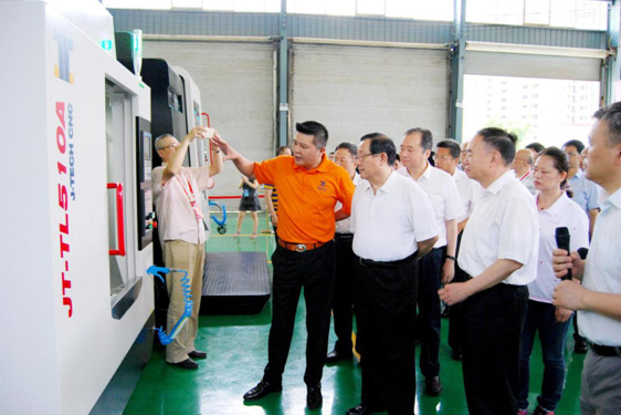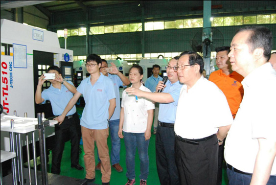 萬鋼部長(zhǎng)考察嘉泰數(shù)控實(shí)施的“智能工廠示范工程項(xiàng)目”建設(shè)成果2016年6月20日,全國政協(xié)副主席、中國科協(xié)主席、國家科技部部長(zhǎng)萬鋼和中國工程院院長(zhǎng)周濟(jì)等來自全國各地的眾多領(lǐng)導(dǎo)專家一行,在福建省常務(wù)副省長(zhǎng)張志南、泉州市委書記鄭新聰、市長(zhǎng)康濤等省市區(qū)領(lǐng)導(dǎo)的陪同下,蒞臨泉州市“數(shù)控一代”匯報(bào)現(xiàn)場(chǎng)。在洛江區(qū)智能裝備產(chǎn)業(yè)園的匯報(bào)現(xiàn)場(chǎng),嘉泰數(shù)控董事長(zhǎng)蘇亞帥就由嘉泰數(shù)控實(shí)施的“3C產(chǎn)業(yè)數(shù)字化智能工廠示范項(xiàng)目”作技術(shù)講解,以及匯報(bào)自主研發(fā)的“門型五軸立式加工中心JT-GL8-V”、高速鉆攻中心JT-TL510A以及3C產(chǎn)業(yè)智能手機(jī)金屬外殼加工自動(dòng)化生產(chǎn)線等最新成果。 ![]()