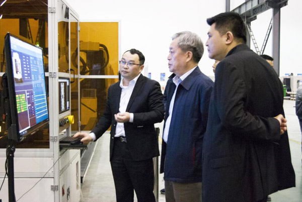 科技部黨組成員郭向遠仔細詢問嘉泰數(shù)控關(guān)節(jié)機器人、智能在線檢測以及數(shù)字化工廠的細節(jié)