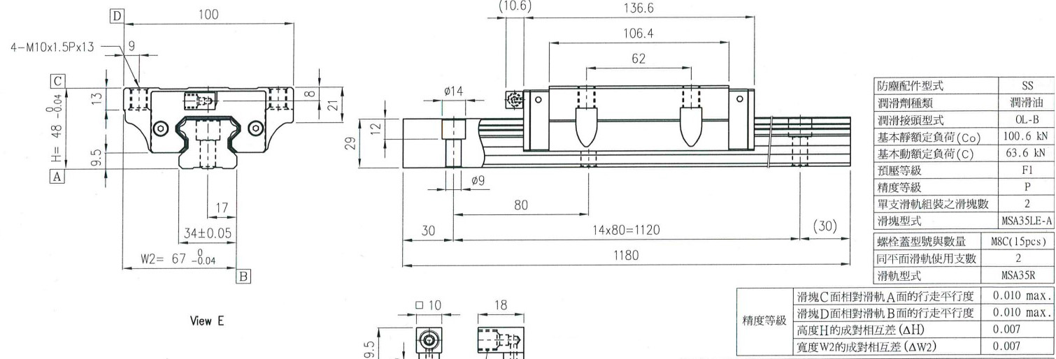 2、線軌的動(dòng)、靜載荷分別達(dá)到100.6KN,與63.6KN;