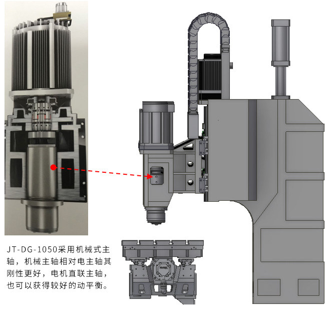 JT-DG-1050的主軸電機(jī)在低速時(shí)有較高的扭矩電機(jī)功率大,適合大面積開(kāi)粗加工用。